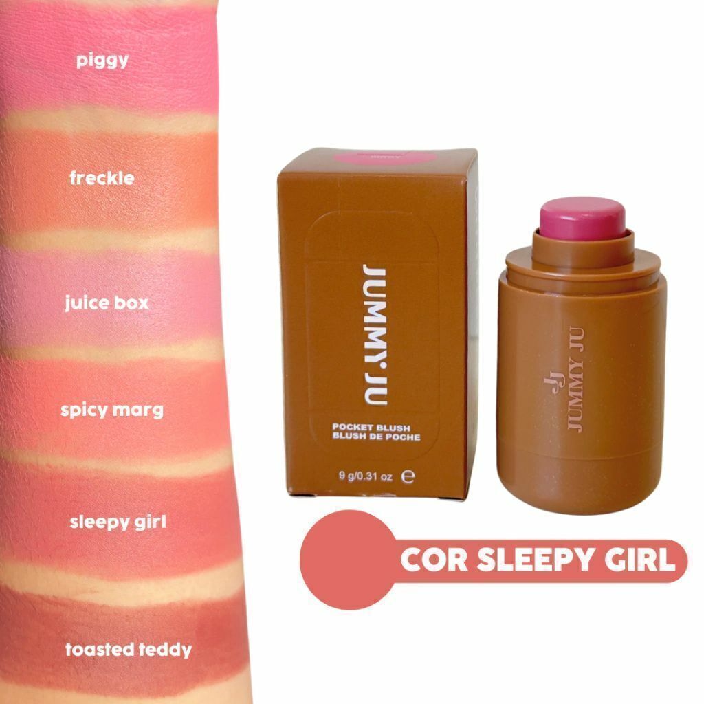 Dê vida ao seu rosto com o Blush em Bastão Jummy Ju, perfeito para criar aquele ar de saúde com um acabamento acetinado e radiante.