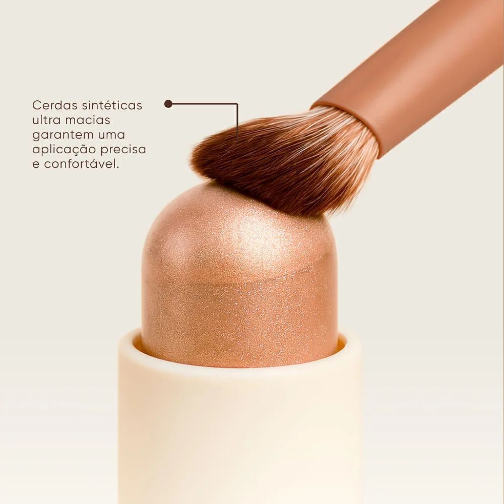 Pegue com o pincel uma pequena quantidade de produto, retirando o excesso e aplique levemente nas áreas desejadas.