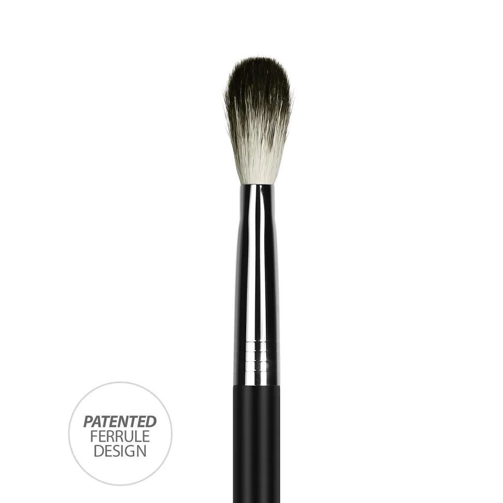 Pincel projetado para utilizar na aplicação de produtos em pó, como iluminador, blush ou contorno em áreas mais precisas do rosto.