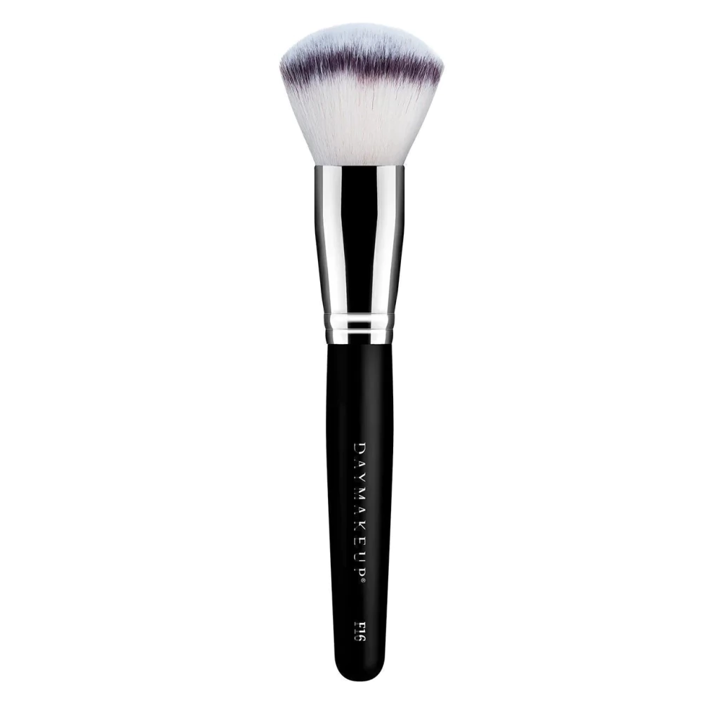 O pincel F16 Day Makeup é um pincel grande de cerdas sintéticas de fibra óptica extremamente macias e super densas, permite melhor acabamento na aplicação de pó em todo o rosto.